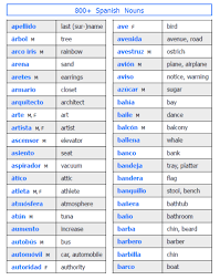 Printable Spanish Nouns Chart As Part Of 1800 Spanish Vocabulary Cards Set Spanish Vocabulary How To Speak Spanish Beginner Spanish Worksheets