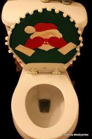 Santa Toilet Seat Cover Hiding Eyes Felt Red Green White Dark Medium Light Skin Tone Santas Vintage Inspired Christmas Bathroom Decor Christmas Bathroom Decor Toilet Seat Cover Diy Christmas Decorations