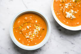 Roasted Red Pepper Soup Shots Recipe Epicurious Com Red Pepper Soup Soup Shots Stuffed Peppers