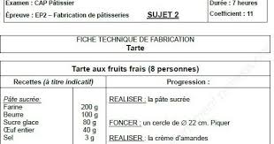 Cap Patissier En Candidat Libre Les Fiches Techniques De Fabrication Classees Par Recettes Les Tartes Madame Pepites Cap Patissier Patissiere Recette