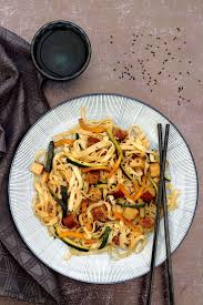 Wok Vegetarien Nouilles Tofu Courgette Et Poivron Amandine Cooking En 2020 Tofu Recette Tofu Fume Recette Tofu