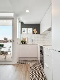 Decorer Son Appartement Mosaique Blanc Noir Et Parquet Sur Le Sol Dans La Cuisine Blanche Cuisine Moderne Comment Decorer Son Appartement Cuisine Appartement